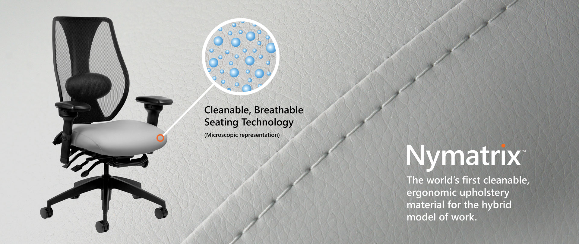Toronto, Ontario – August 18th, 2021 – ergoCentric introduces Nymatrix, a new ergonomic upholstery material that can be easily cleaned and disinfected. As employees transition