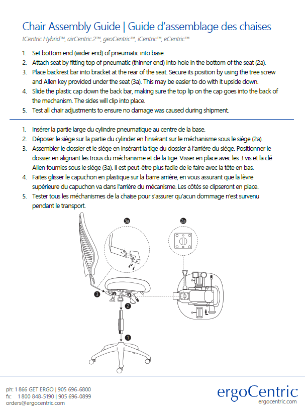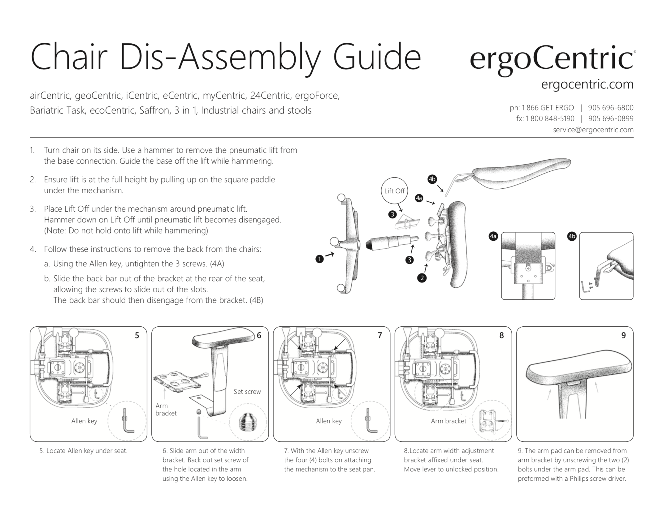 Instructions for the disassembly of airCentric, geoCentric, iCentric, eCentric, myCentric, 24Centric, ergoForce, Bariatric Task, ecoCentric, Saffron, 3-in-1 Sit-Stand, Industrial chairs and stools.
